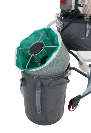 - Comodo contenitore a sgancio per scarico sicuro del materiale aspirato