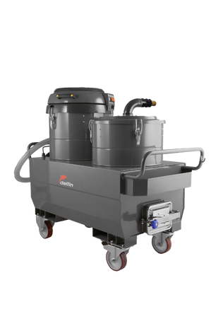 Compact and powerful vacuum cleaners for the suction of oils and chips with an integrated discharge hose for liquids. Level control, floating device, sieve grid for the separation and disposal of metal chips. The duration of the vacuum cleaner is ensured by different levels of filtration specific to the type of liquid withdrawed.