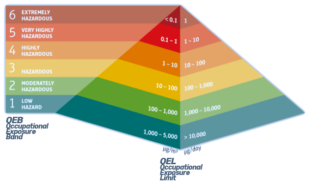 Per la sicurezza degli operatori sono state definite delle soglie OEL (Occupational Exposure Limit) che indicano i livelli massimi di concentrazione di prodotto per metro cubo. Se i valori restano al di sotto di queste soglie, l'operatore non corre rischi anche restando esposto per 8 ore al giorno. Il livello di tossicità del principio, chiamato OEB (Occupational Exposure Band) viene definito in base alla pericolosità per la salute ed alle caratteristiche sopracitate.